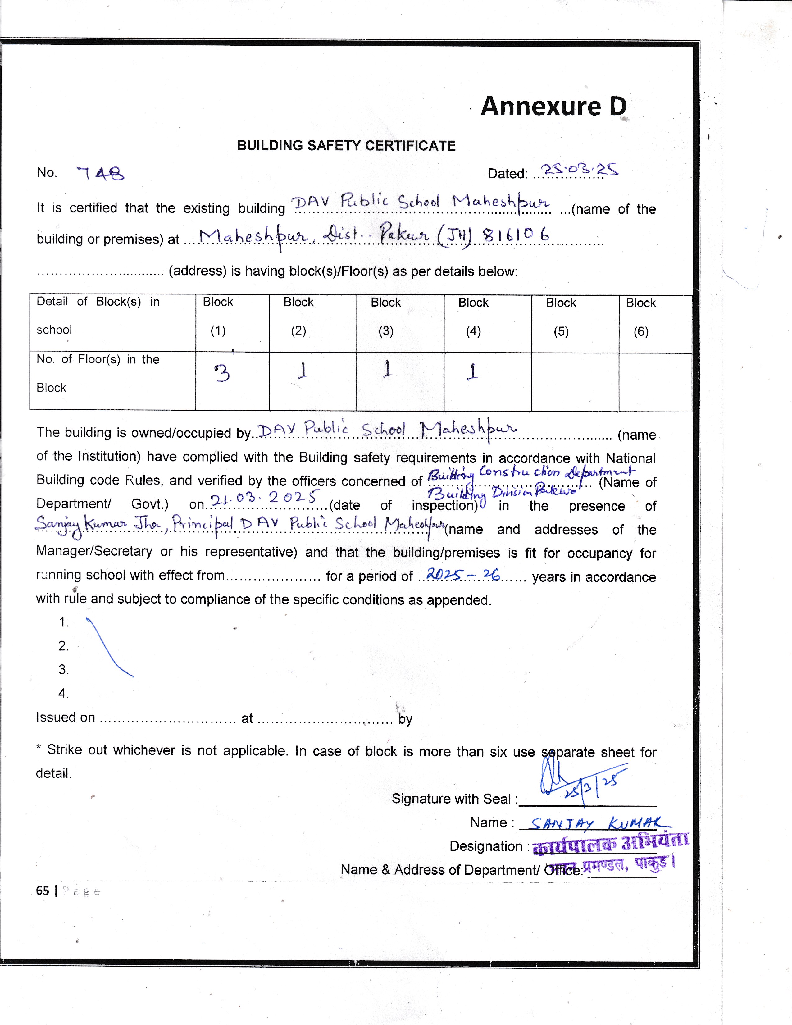 | 5 | COPY OF VALID BUILDING SAFETY CERTIFICATE | View |