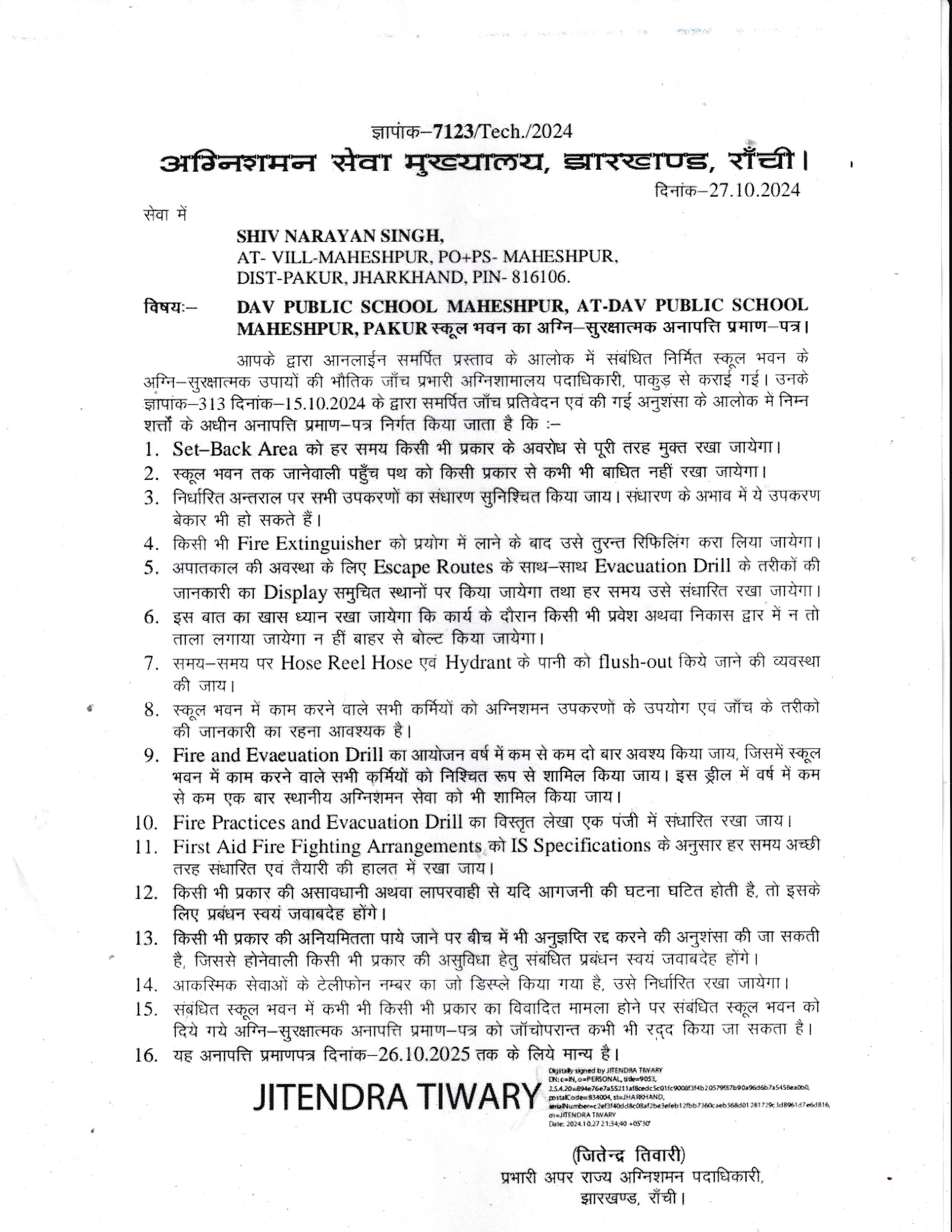 | 6 | COPY OF VALID FIRE SAFETY CERTIFICATE | View |